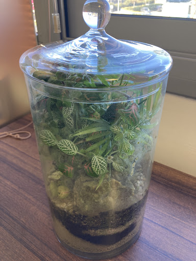 Ecosistema terrario POCKET VIVALDI, Spathi y Fittonias (25×17 cms.)
