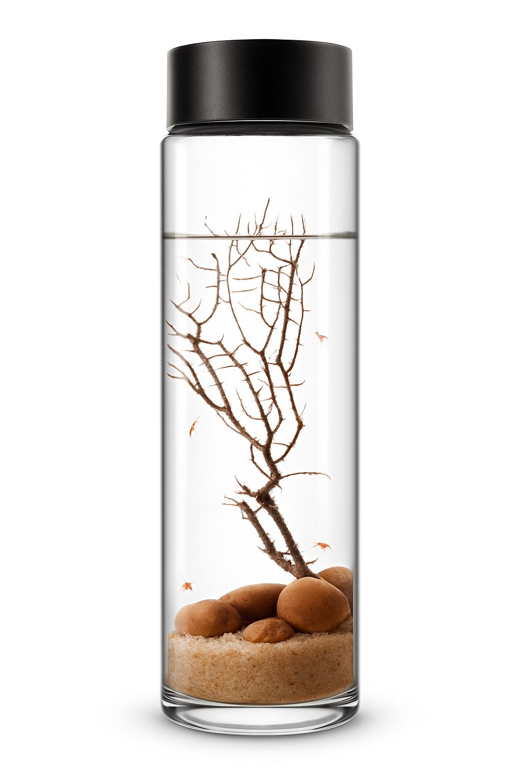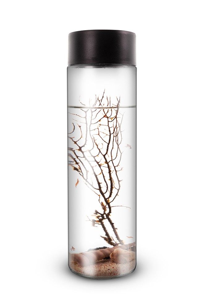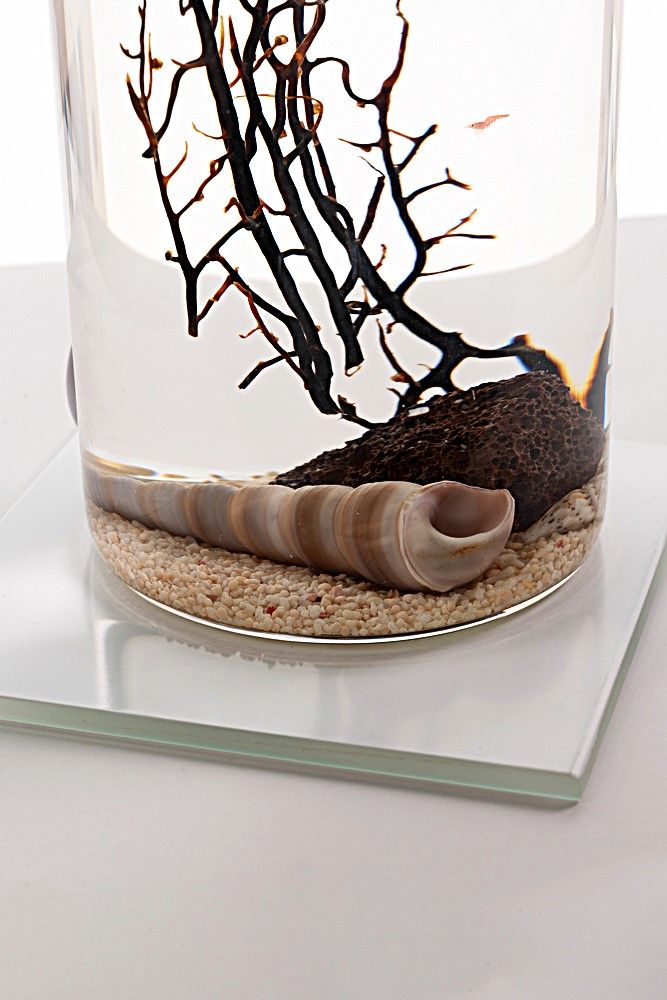 - Contiene ecosistema con 1 gorgonia inerte y ramificada, 4/6 camarones, gravas marinas, roca marina