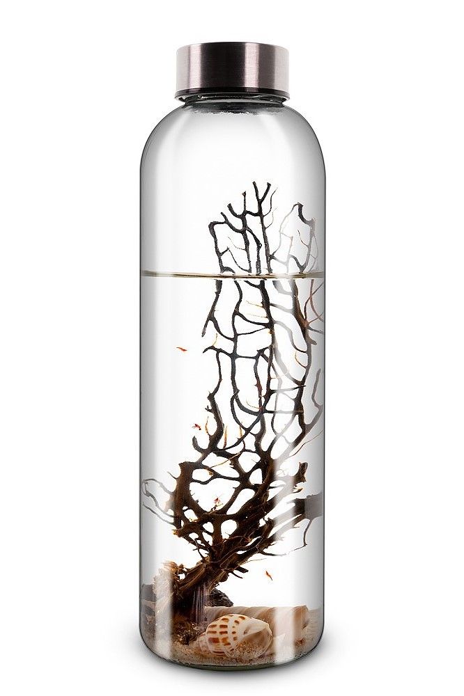 • Contiene ecosistema con 1 gorgonia inerte y ramificada, 4/6 camarones, gravas marinas, roca marina