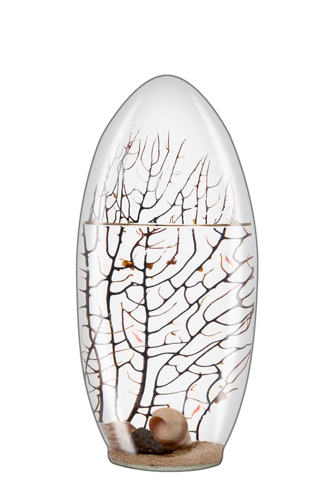 - Contiene ecosistema con 1 gorgonia inerte y ramificada, 4/5 camarones, gravas marinas, roca marina