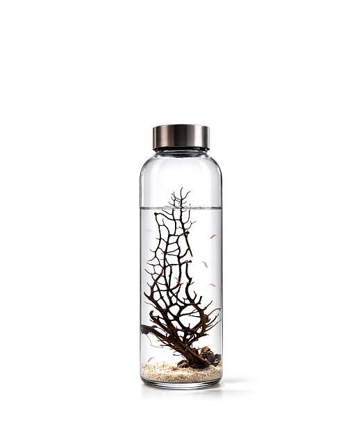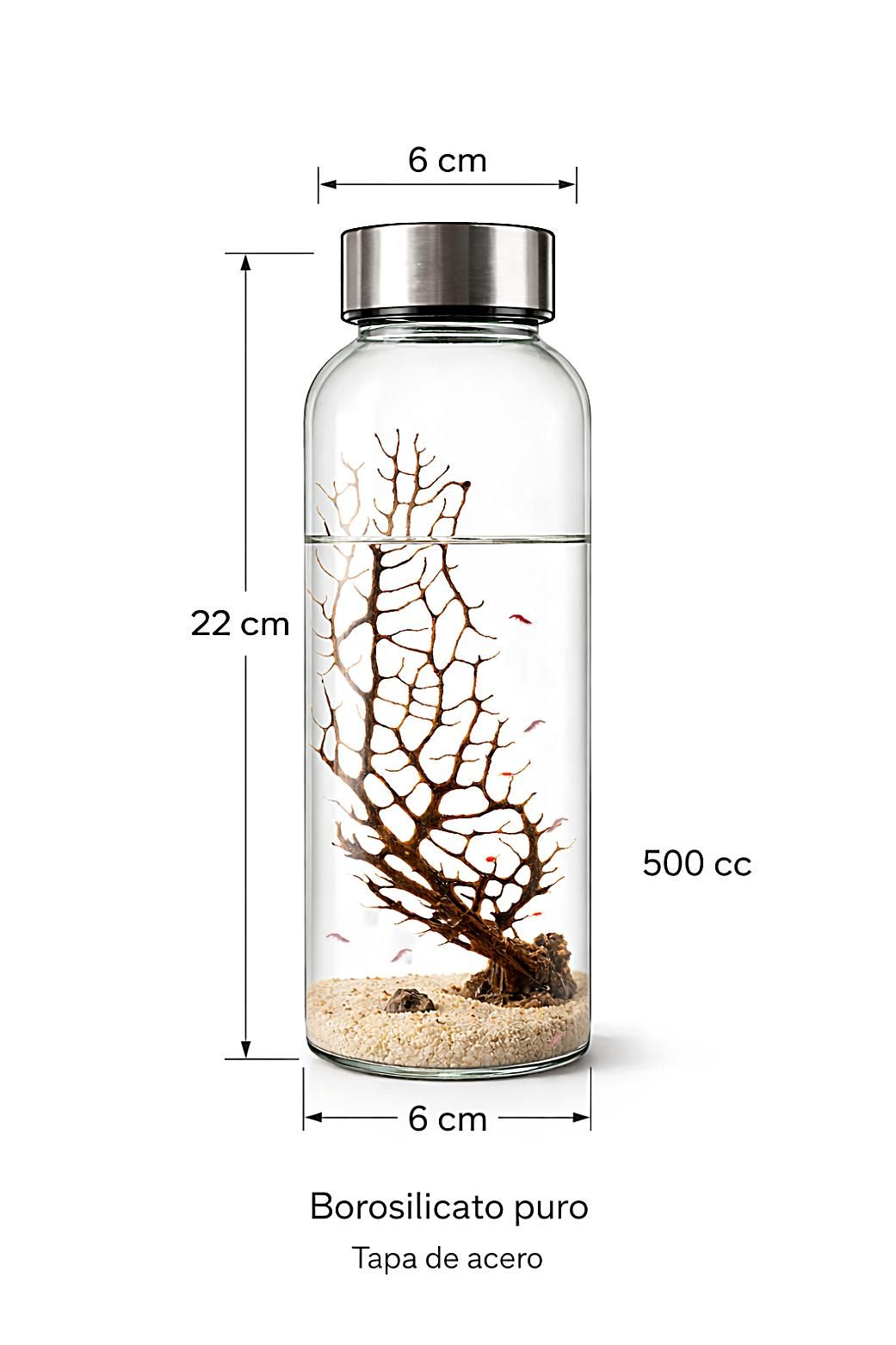 - Contiene ecosistema con 1 gorgonia inerte y ramificada, 4/5 camarones, gravas marinas, roca marina