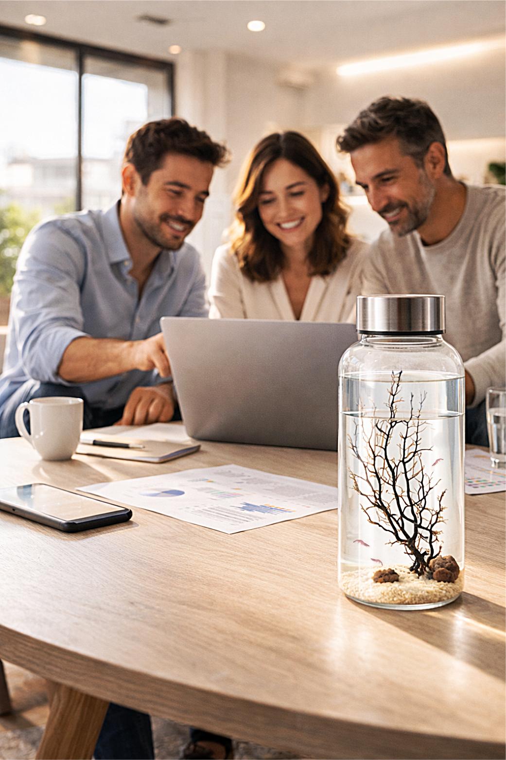 - Ecosistema autosuficiente con camarones mini
